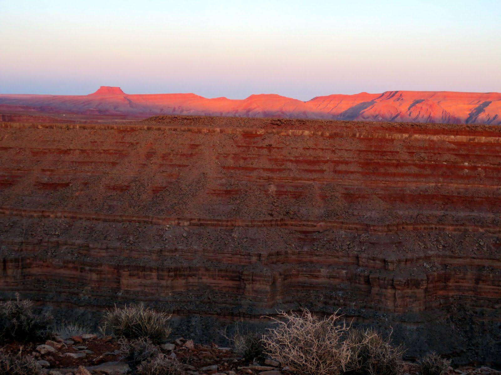 Goosenecks State Park, high above the deeply entrenched meanders of the San Juan River, on Saturday night. We had the entire place to ourselves and the view extended from the edge of Cedar Mesa all the way south to Monument Valley.